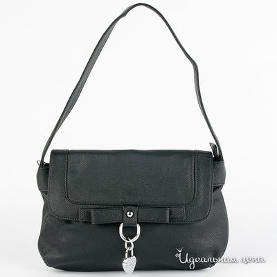 Изящная женская сумка из искусственной кожи. Стенки изделия плотные. Передняя часть сумки декорирована замочком в виде сердечка. Один внешний карман на молнии. Основное отделение застегивается на молнию. Внутри два открытых кармашка и два прорезных кармана на молнии. Подкладка текстиль. Ручки средней длины позволяют носить сумку на плече. Цвет фурнитуры - черный. ножки отсутствуют.