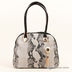 Изящная женская сумка из фактурной экокожи. Стенки изделия плотные. Передняя часть сумки декорирована брелоком. Один внешний карман на молнии. Основное отделение застегивается на молнию. Внутри два открытых кармашка и один прорезной карман на молнии. Подкладка текстиль. Ручки средней длины позволяют носить сумку на плече. Цвет фурнитуры - золото, ножки металлические. Дно жесткое, формованное.