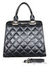 Изысканная стеганная (на лицевой части) сумка из натуральной кожи, на молнии, держит форму. Две короткие ручки, крепятся на врезные металлические квадраты. На задней стенке удобный карман на молнии; внутри два отделения, между отделениями карман на молнии, один боковой карман на молнии, два открытых отделения для мобильного телефона, ключей и прочего. В комплекте имеется наплечный ремень. Металлические защитные ножки на дне.