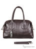 Сумка из гладкой кожи на молнии, держит форму. По бокам две механические застежки, где можно закрепить дополнительный плечевой ремешок, две ручки средней длины; внутри два отделения, между отделениями карман на молнии, один боковой карман на молнии, два открытых отделения для мобильного телефона, ключей и прочего. В комплекте имеется наплечный ремень. Украшена изящной брендовой подвеской. Металлические защитные ножки на дне.