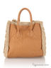 Модная двойная сумка из искусственной кожи: снаружи из экокожи, по бокам и внутри выполнено в технике ручной вязки, две ручки средней длины. Закрывается на магнитную кнопку, дополнительно по бокам на кнопку; внутри текстильная с рисунком, на молнии. Внутри одно отделение, один боковой карман на молнии, два открытых отделения для мобильного телефона, ключей и прочего.