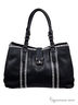 Стильная сумка формы саквояж на молнии из искусственной кожи. Дополнительно закрывается в виде ремешка на механическую застежку. По бокам молнии дополнительно два кармана на магнитной кнопке. Две удлиненные ручки крепятся в виде ремешков. Декорирована белыми строчками; внутри одно отделение, один боковой карман на молнии, два открытых отделения для мобильного телефона, ключей и прочего.