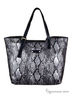 Стильная сумка на молнии из искусственной кожи с тиснением под рептилию. Две ручки средней длины крепятся в виде ремешков. На задней стенке сумки с внешней стороны удобный карман на молнии; внутри одно отделение, один боковой карман на молнии, два открытых отделения для мобильного телефона, ключей и прочего.