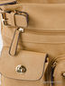 Сумка закрывается на молнию.Одно удобное отделение .Внутри карман на молнии и два отделения для телефона.На лицевой стороне три кармана и на задней один на молнии.29-4-38