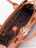Закрывается на молнию, внутри одно отделение, разделенное карманом на молнии. На внутренних стенках один карман на молнии и два кармана открытых для мобильного телефона. На задней стенке карман на молнии. Дополнительный, регулируемый ремень на плечо.