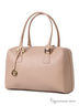 Сумка-бочонок жесткой формы. На двух жестких ручках средней длины. Одно отделение на молнии до дна сумки. Внутри сумки карманы разного типа. Подкладка - бежевый хлопок, фурнитура - золото. Длинный, съемный плечевой ремешок. Дно на ножках. Размеры: 21(45)-34-13см