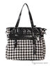 Стильная дамская сумка на двух ручках средней длины. С лицевой стороны декоративные ремешки и вставки из экокожи. Основное отделение закрывается на молнию. Внутри отделение на молнии, разделяющее ее на две части, так же карманы разного типа. Подкладка серый нейлон, фурнитура черный антик. Съемный, регулируемый, длинный плечевой ремень. Дно мягкое, на ножках. Размеры: 28(50)-32-11см