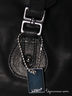 Дамская сумка - портфель. Одно отделение на молнии. Внутри сумки отделение на молнии, разделяющее ее на две части. С лицевой и задней стороны декоративные элементы в виде сжатости. По бокам декоративные ремешки. Подкладка коричневый хлопок, фурнитура - черный антик. Ручки жесткие, средней длины. Съемный плечевой ремень. Дно мягкое, на ножках, держит форму. Размеры: 26(41)-35-12см