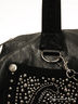 Стильная и вместительная сумка необычной округлой формы с декорированной стразами лицевой стороной и плетением по бокам. Передние карманы выполненны из замши. С задней стороны также имеется карман на молнии. Просторное внутреннее отделение с разного типа карманами, закрывается на молнию. Подкладка- черный хлопок, фурнитура - никель. Ручки мягкие средней длинны. Размеры: 18(40)-37-11см