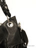 Очень стильная модель на одинарном ремешке средней длины с карманом на молнии с задней стороне. Простороное внутреннее отделение под молнией с карманами разного типа. Подкладка - серый нейлон, фурнитура - серебро. Небольшое жесткое дно, также прилагается длинный съемный плечевой ремень - стропа. Материал с небольшим блеском. Размеры: 25(44)-34-11см