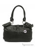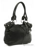 Небольшай сумка на двух ручках, декорированная метелическими кнопками. Основное отделение закрывается на молнию и содержит разного типа карманы. Подкладка черный нейлон, фурнитура серебро. Мягкие ручки средней длины и съемный длинный регулируемый плечевой ремень. Размеры: 21(45)-32-13см