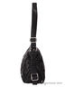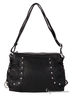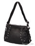 Небольшая сумочка на длинном плечевом ремешке с декоративными металлическими клепкам на лицевой стороне. Основнйо отдел закрывается на молнию и содержит разного типа карманы. Подкладка - серый хлопок, фурнитура - серебро. Жесткое дно с ножками. Линия "Basic". Размеры: 19-26-9см