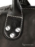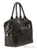 Дамская сумка из натуральной кожи. Основное отделение закрывается на молнию. Внутри сумки отделение на молнии, разделяющее ее на две части. С лицевой стороны карман на молнии. Декоративные элементы в виде ремешков по бокам из кожи, за счет которых происходит небольшое сжатие кверху. Подкладка - серый хлопок, фурнитура - никель. Короткие твердые ручки. Дно мягкое, на ножках, держит форму. Размеры: 14(25)-33-11см