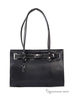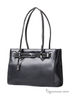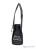 Дамская сумка жесткой формы. Основное отделение на молнии. Внутри отделение на молнии, разделяющее ее на две части. Так же карманы разного типа. С обратной стороны карман на молнии. Декоративный элемент в виде ремешка с лицевой стороны. Подкладка - серый нейлон, фурнитура - черный антик. Две длинные, жесткие ручки. Дно на ножках. Отделка из лаковой кожи серого цвета Размеры: 22(50)-33-12см