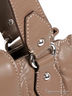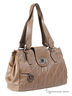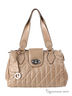 Небольшая стеганная дамская сумка из натуральной кожи коричневого цвета. Основное отделение на молнии под клапаном на замке, разделено на две части отделением с молнией, содержит карманы разного типа. Подкладка - бежевый хлопок, фурнитура - серебро. Две мягкие ручки средней длинны. Размеры: 21(44)-34-12см