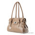 Строгая сумка на двух длинных ручках. Основное отделение под клапаном на замке. Внутри сумки отделение на молнии, разделяющее ее на две части. Так же карманы разного типа. С задней стороны карман на молнии. Подкладка - бежевый хлопок, фурнитура - серебро. Дно мягкое на ножках. Размеры: 24(48)-34-12см