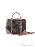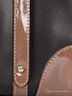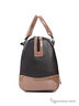 Дамская сумка-бочонок жесткой формы. Основное отделение на молнии. Внутри карманы разного типа. Декоративный элемент в виде лаковых вставок. Подкладка - бежевый нейлон, фурнитура - черный антик. Две короткие, жесткие ручки. Регулируемый, длинный ремешок. Дно на ножках. Отделка из лаковой кожи кофейного цвета Размеры: 23(35)-29-16см