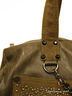 Стильная и вместительная сумка необычной округлой формы с декорированной стразами лицевой стороной и плетением по бокам. Передние карманы выполненны из замши. С задней стороны также имеется карман на молнии. Просторное внутреннее отделение с разного типа карманами, закрывается на молнию. Подкладка - коричневый хлопок, фурнитура - никель. Ручки мягкие средней длинны. Размеры: 18(40)-37-11см