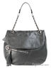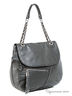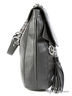 Дамская сумка из натуральной кожи серого цвета. Основное отделение под клапаном на магнитах, содержит карманы разного типа. С лицевой и задней стороны карман на молнии, так же с лицевой стороны небольшая декоративная кисть. Подкладка - серый хлопок, фурнитура - серебро. Средней длинны на цепочке ручка. Размеры: 28(47)-35-8см