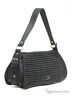 Небольшая сумка , с лицевой стороны рифленый кож.зам., по бокам декоративные ремешки. Основное отделение закрывается на молнию и содержит разного типа карманы. Подкладка синий нейлон, фурнитура серебро. Мягкая ручка средней длины. Размеры: 15(36)-35-11см