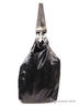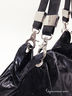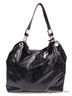 Стильная моделью с несколькими возможностями фиксации ручек за счет стильных и удобных карабинов - могут использоваться две средней длины ручки или одна с перекрестным креплением. Вместительное внутреннее пространство под молнией с кармашками разного типа, разделенное на лве части разделителем на молнии. Подкладка - серый нейлон,, фурнитура - серебро. Жесткое дно при мягкой форме. Приятный материал с небольшим блеском, как будто бы он мокрый. Размеры: 27(57)-36-14см
