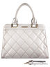 Изысканная стеганная (на лицевой части) сумка из натуральной кожи, на молнии, держит форму. Две короткие ручки, крепятся на врезные металлические квадраты. На задней стенке удобный карман на молнии; внутри два отделения, между отделениями карман на молнии, один боковой карман на молнии, два открытых отделения для мобильного телефона, ключей и прочего. В комплекте имеется наплечный ремень. Металлические защитные ножки на дне.11 х 24 х 31