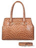 Элегантная сумка из натуральной кожи на молнии с тиснением под страусиную кожу, хорошо держит форму. Две ручки средней длины, высотой 20 см крепятся на металлические кольца. На дне сумки металлические защитные ножки. На тыльной стороне один удобный карман на молнии; внутри два отделения, между отделениями карман на молнии, один боковой карман на молнии, два открытых отделения для мобильного телефона, ключей и прочего. В комплект входит наплечный ремень.30 (Д) х 14 (Ш) х 20 (В)