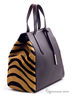 Стильная и элегантная сумка из натуральной кожи на молнии с двумя ручками средней длины высотой 14 см. Боковые вставки выполнены из меха пони с принтом под зебру. Внутри одно открытое отделение, два боковых кармана на молнии, один открытый карман. Сумка украшена съемной изящной подвеской с логотипом.30 (Д) х 15 (Ш) х 30 (В)