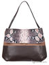 Сумка из экокожи, комбинированная, с крышкой-запахом тисненной под рептилию на молнии. Один ремень высотой 30 см на металлических кольцах. Внутри одно отделение, дополнительная внутренняя сумочка на молнии: внутри одно отделение, один боковой карман на молнии, два открытых отделения для мобильного телефона, ключей и прочего.36 (Д) х 16 (Ш) х 31 (В)