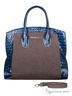 Стильная сумка из экокожи с тиснением под рептилию на магнитной кнопке. Накладной карман на магнитной кнопке на лицевой стороне и вставки по бокам, дно и наплечный ремень выполнены под замшу. Две удлиненные ручки высотой 19 см. Внутри два отделения, между отделениями карман на молнии, один боковой карман на молнии, два открытых отделения для мобильного телефона, ключей и прочего. В комплект входит наплечный ремень.41 (Д) х 13 (Ш) х 31 (В)