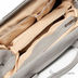 Основное отделение застегивается на рамочный замок в стиле саквояж. Внутри один карман на молнии для документов + два маленьких кармана для визиток или кредитных карт и еще одно небольшое отделение. Плотные ручки. Формованное дно, есть ножки.