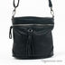 Внешняя сторона декорирована небольшой кисточкой. Основное отделение застегивается на металлическую молнию. Внутри один карман на молнии для документов + один маленький карман для визиток или кредиток. Плотная ручка. Длинный съемные ремень. Ножек нет.