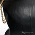 Боковые стороны сумки декорированы металлической цепочкой. Основное отделение застегивается на металлическую молнию. Один карман на внешней стороне сумки. Внутри один карман на молнии для документов + один маленький карман для визиток или кредитных карт и еще одно небольшое отделение. Плотные ручки. Цвет фурнитуры - золото. Ножек нет.
