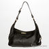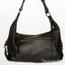 Небольшая сумочка, состоящая из одного основного отдела, закрывающегося на молнию и содержащего разного типа карманы. Подкладка - серый нейлон, фурнитура - светлое золото. Сзади имеется небольшой кармашек на молнии. Бока немного собраны за счет небольших декоративных пряжек, за счет чего сумка приобретает вид "лодочки". Ремень мягкий короткий с возможностью наращивания длины за счет дополнительного элемента.