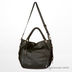 Классическая модель с мягкой верхней частью и жестким дном. Основной отдел закрывается на молнию и содержит разного типа карманы. Подкладка - серый нейлон, фурнитура - светлое золото. Бока декорированы небольшими пряжками, ручки жесткие средней длины. Ремень регулируемый длинный съемный.