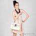 Сумка с двумя ручками на кольцах. Застегивается на оригинальный замок с клапаном. Внутри разделитель на молнии. Имеется задний карман на молнии.
