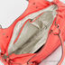 Закрывается на молнию, внутри одно отделение, разделенное карманом на молнии. На внутренних стенках один карман на молнии, и два открытых кармана - для мобильного телефона и мелких документов. Короткие ручки. Наплечный регулируемый ремень.