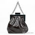 Основное отделение застегивается на оригинальный рамочный замок. Внутри один карман на молнии для документов + два маленьких кармана для визиток или кредитных карт. Ручка выполнена в виде цепи + короткий съемный ремешок. Ножек нет.