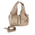 Дамская сумка, состоящая из одного отделения на молнии, содержащего разного типа карманы, декоративные элементы с лицевой и задней стороны в виде нахлестав, плавно переходящих в ручки, на ручках кнопочка. Подкладка серый полиэстер. Фурнитура золото. Ручки мягкие средней длинны, дополнительно длинная. Дно мягкое.