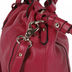 Небольшая дамская сумочка, состоящая из одного отделения на молнии, содержащего разного типа карманы, декоративные элементы в виде сборочек вверху, Подкладка темно-серый полиэстэр, фурнитура золото. Ручка мягкая короткая. Дно мягкое.