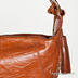 Стильная сумка с одной ручкой. Дно и ручка декорированы люверсами и кнопками. Сумка украшена кисточками на плетенном шнуре. Внутри одно отделение с внутренним карманом на молнии, 2 внутренних кармана для мобильного телефона. Сумка закрывается на застежку- молнию.