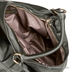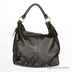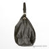 Небольшая сумка мягкой формы на одинарной жесткой ручке с одним основным отделом, содержащим разного типа карманы, под молнией. Подкладка - серый нейлон, фурнитура - светлое серебро. Жесткое дно и защищенные декоративными вставками бока. Вместительный карман на молнии с задней стороны и декоративные пряжки по бокам.