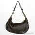 Небольшая сумочка "бананообразной" формы с декоративными пряжками и плетеными вставками из кожи по бокам. Вместительный основной отдел на молнии с разного типа карманами. Подкладка - серый нейлон, фурнитура - светлое золото. Оригинальный ремешок с возможностью позиционирования в двух вариантах - двойной короткий ремешок или длинный одинарный.