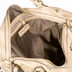 Вместительная сумка с жестким дном и жестким основным каркасом. Основной отдел закрывается на молнию и содержит разного типа карманы. Сзади имеется карман на молнии. Подкладка серый нейлон, фурнитура - светлое золото. Ручки жесткие, средней длины и длинный регулируемый плечевой съемный ремень. Контрастная отделка.