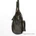 Стильная сумка с закругленной верхней частью, двумя большими накладными карманами на лицевой стороне и одним карманом на молнии сзади. Основной отдел закрывается на молнию, содержит разного типа карманы. Подкладка - серый нейлон, фурнитура - светлое золото. Короткие мягкие ручки и съемный регулируемый плечевой ремешок.