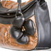 Оригинальная женская сумка из натуральной кожи, с выделкой под змеиную. Основной отдел застегивается на магнитную кнопку. Внешняя сторона сумки декорирована вставкой в виде черного цветка. Внутри один карман на молнии и одно маленькой отделение для мобильного или кредиток. Плотные кожные ручки средней длины позволят носить сумку как в руке, так и на плече. Ножек нет, подкладка черного цвета.