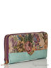 Кошелек с застежкой на молнию. Внутри имеется три отсека для купюр, отделение для мелочи с застежкой на молнию и 10 отделений для пластиковых карт и чеков. Изделие декорировано прострочками. Удобный и стильный аксессуар для повседневного использования.