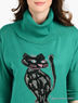 Мягкий, нежный свитер свободного силуэта выполнен из вискозного джерси. Широкий отложной ворот и манжеты выполнены из трикотажного кашкорсе, укороченный цельнокроеный рукав "летучая мышь", полочка декорирована вязаным рисунком в виде кошки и стразами. Будьте великолепны каждый день!