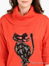 Мягкий, нежный свитер свободного силуэта выполнен из вискозного джерси. Широкий отложной ворот и манжеты выполнены из трикотажного кашкорсе, укороченный цельнокроеный рукав "летучая мышь", полочка декорирована вязаным рисунком в виде кошки и стразами. Будьте великолепны каждый день!