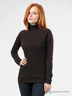 Полушерстяной свитер прямого покроя, теплый и стильный. Воротник хомут выполнен из трикотажа в рубчик. Длинные рукава реглан.